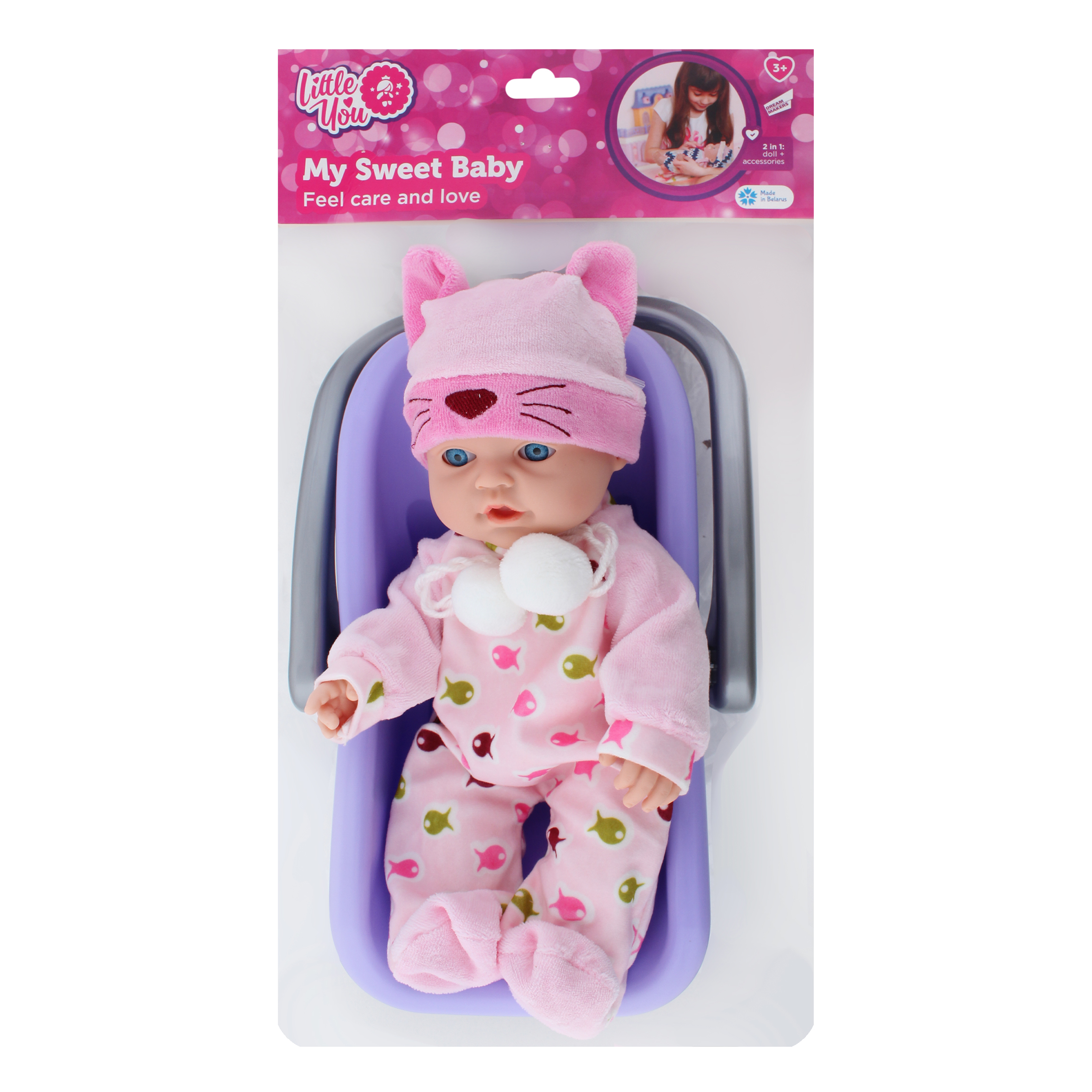Дана сторінка відображає максимально повну інформацію про Лялька для дітей від 3років №PU12 Малюк з переноскою Little You 1шт.