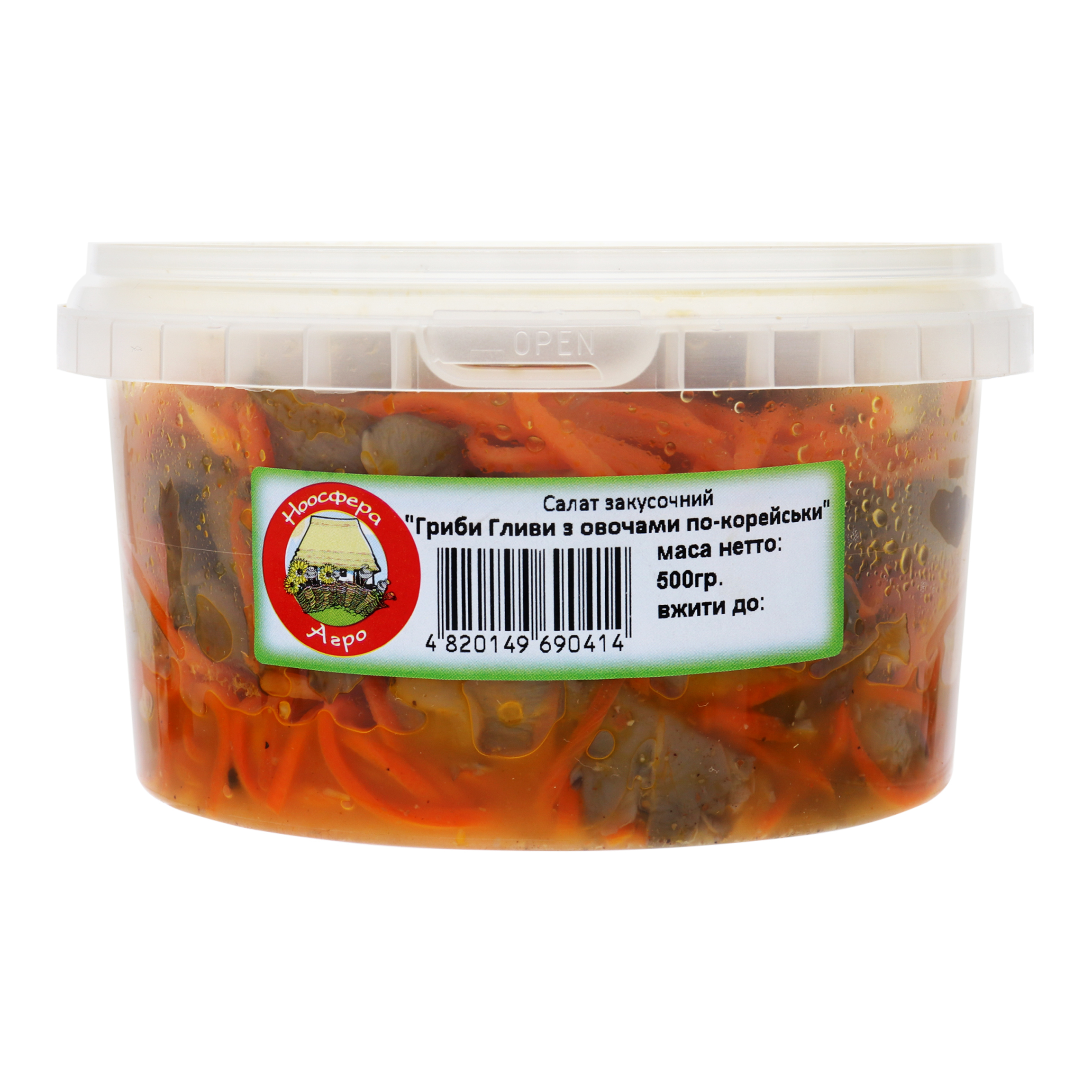 Дана сторінка відображає максимально повну інформацію про Салат закусочний Гриби гливи з овочами по-корейськи Ноосфера-Агро п/у 500г.